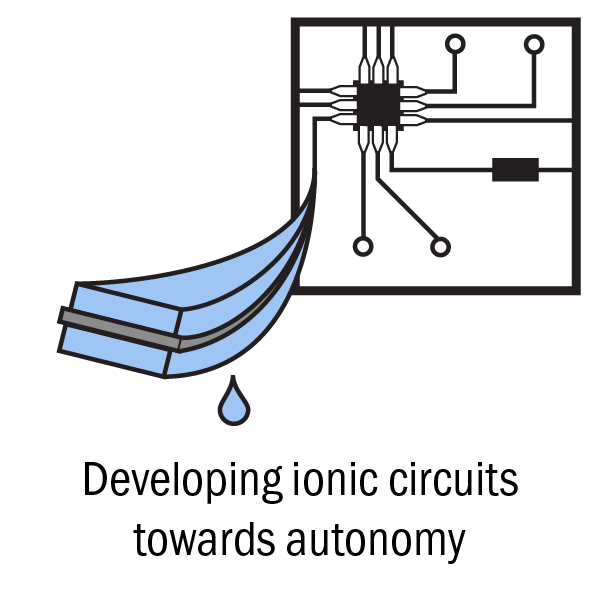 Taking inspiration from these systems, our group seeks to advance the development of synthetic ionic circuits in solvated polymer systems such as textiles and gels. Goals include the development of neuron-like pairing of sensors and actuators across long distances and the generation of power from water evaporation.